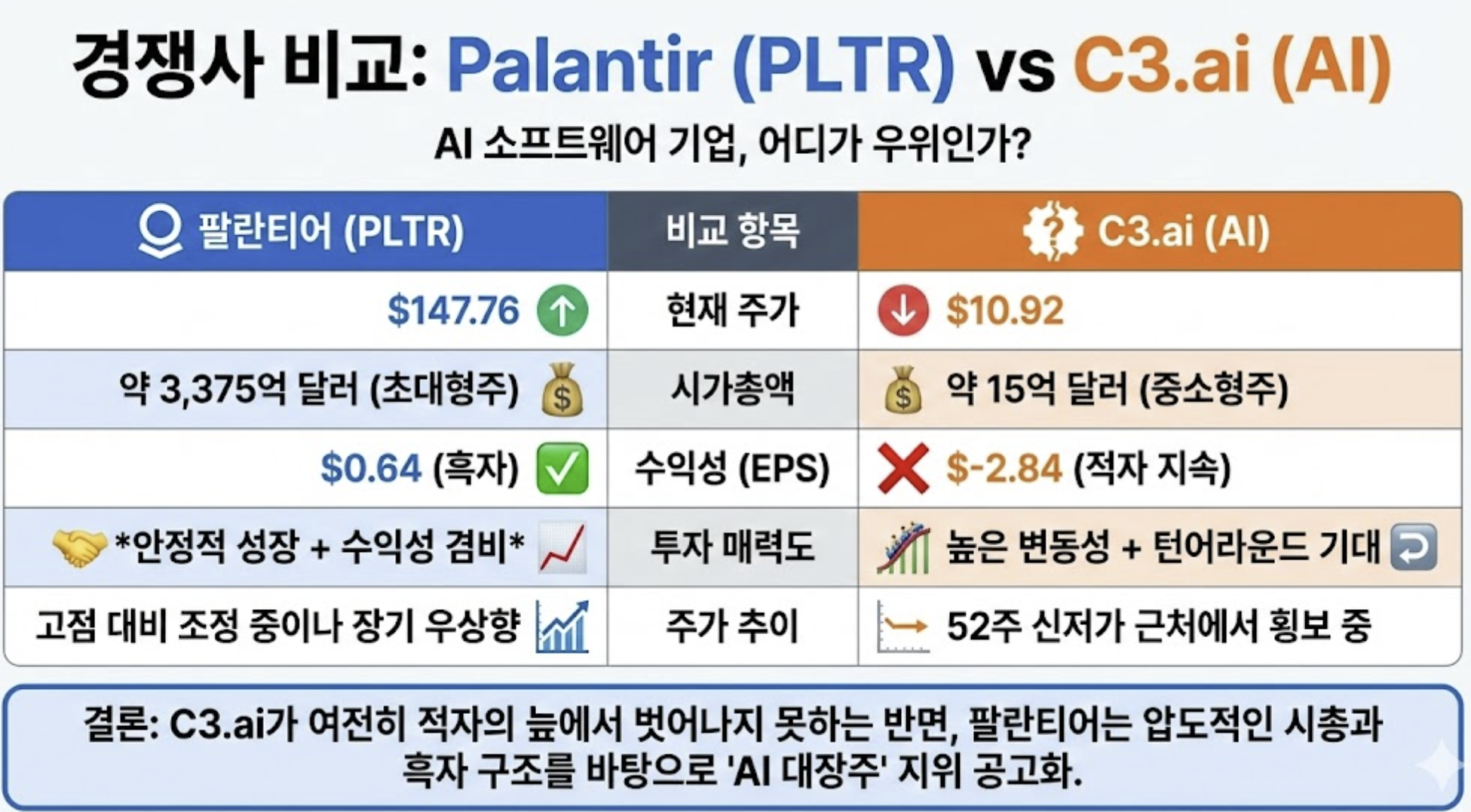 | 비교 항목 | 팔란티어 (PLTR) | C3.ai (AI) |