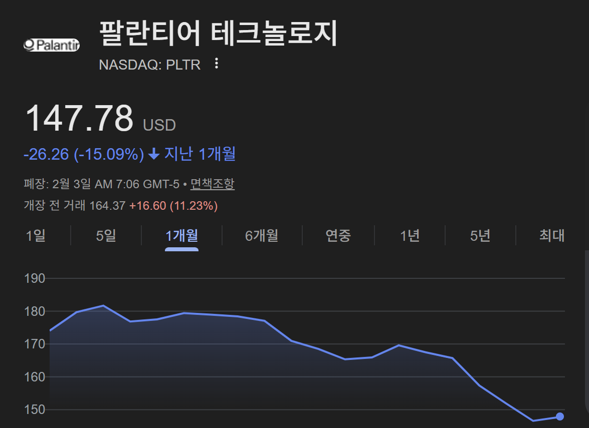 2026년 2월 초 현재, 팔란티어의 주가는 147.76달러 수준에서 거래되고 있습니다. perplexity