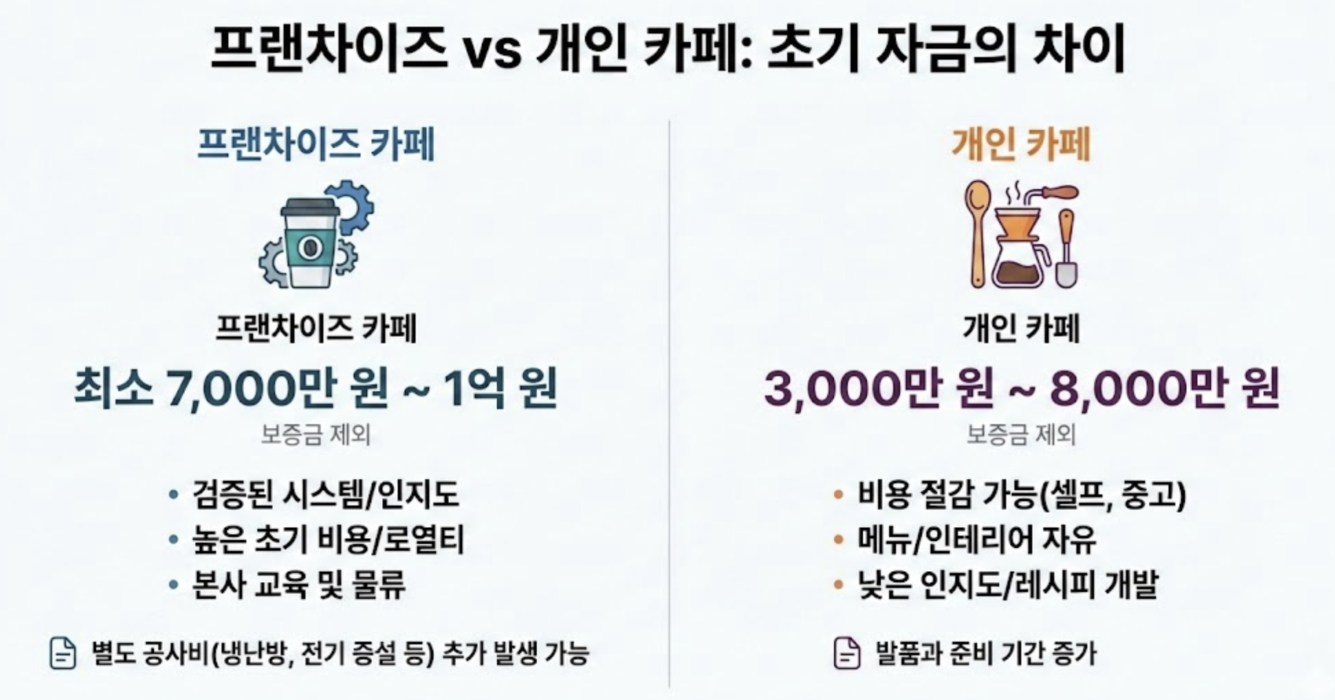 1. 프랜차이즈 vs 개인 카페: 초기 자금의 차이