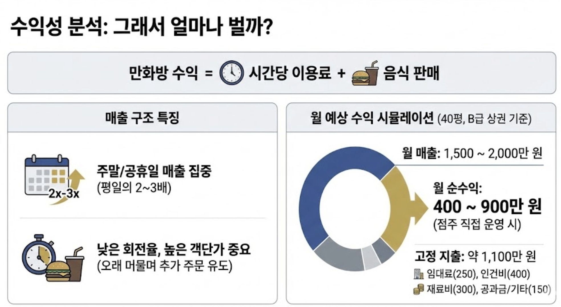 - 월 순수익: 400 ~ 900만 원 (점주 직접 운영 시).