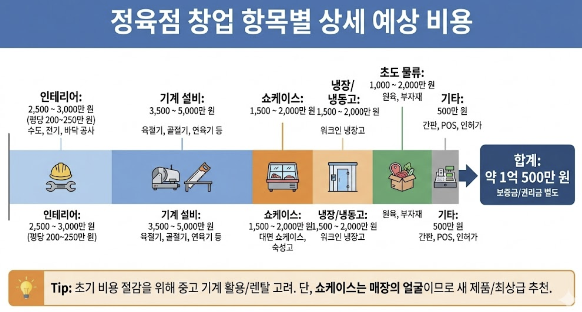 | 쇼케이스 | 1,500 ~ 2,000만 원 | 정육 대면 쇼케이스, 냉동 평대, 숙성고 |