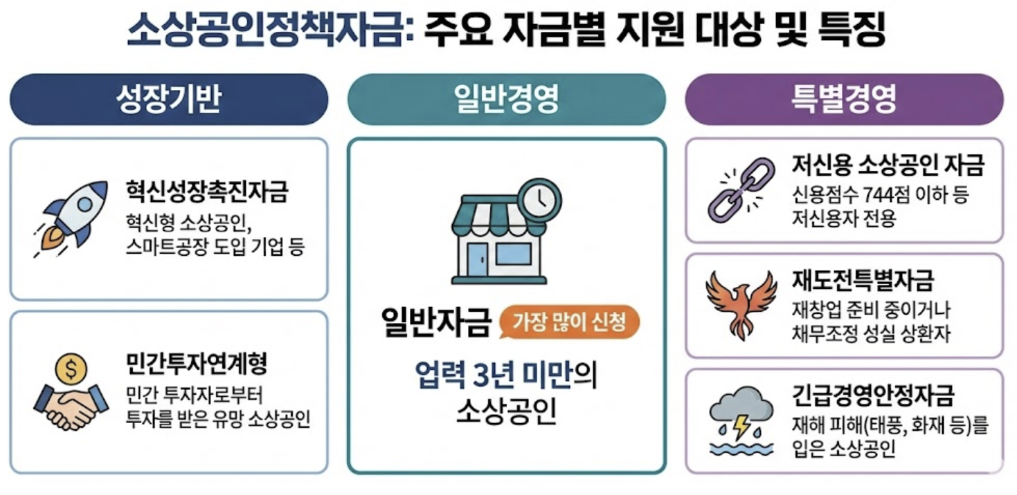 | 긴급경영안정자금 | 재해 피해(태풍, 화재 등)를 입은 소상공인 |