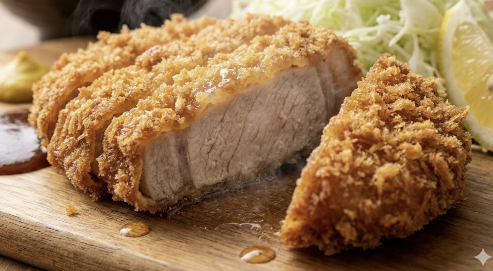- 자르지 않고 통으로 튀겨 육즙이 보이는 단면